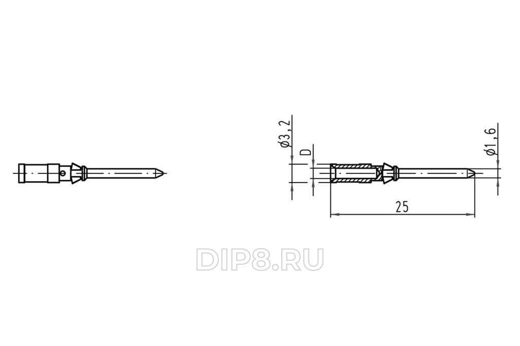 Контакт, "папа", посеребренные, 0,14-0,37мм2, Han D, обжим, 10A