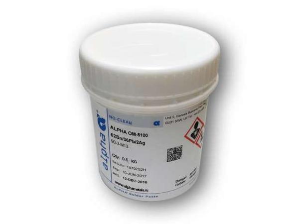Паста паяльная ALPHA OM5100, безотмывная Sn62Pb36Ag2 тип 3 (25-45мкм), банка 500 гр