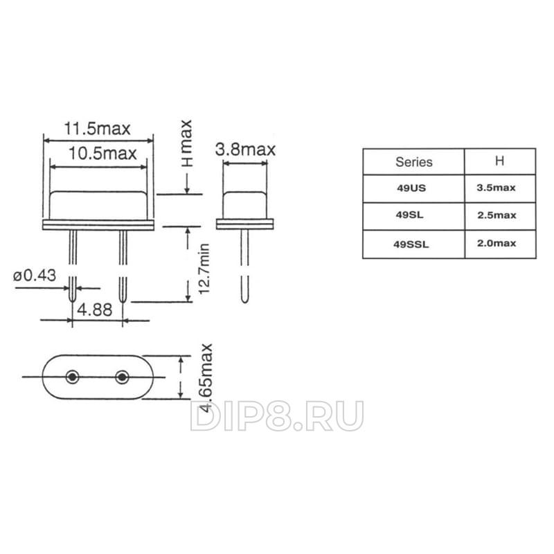 Резонатор кварцевый, 16МГц, ±30ppm, 20пФ, THT