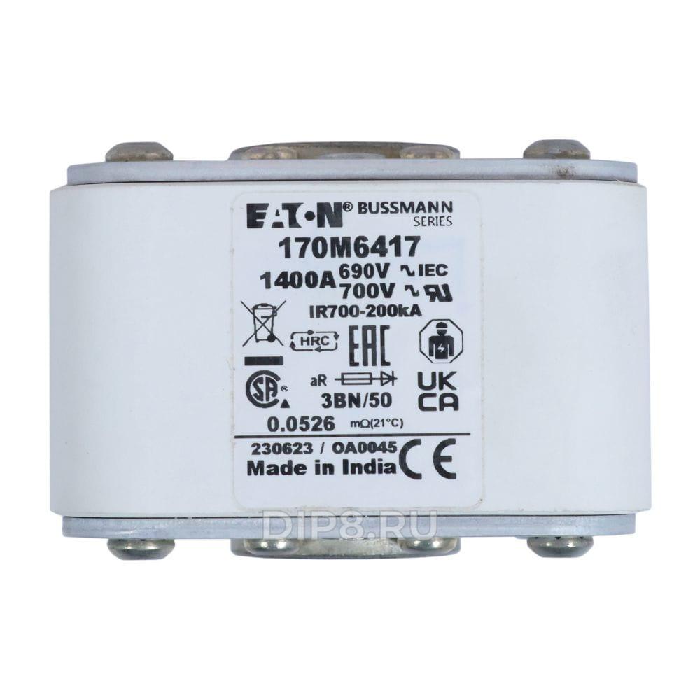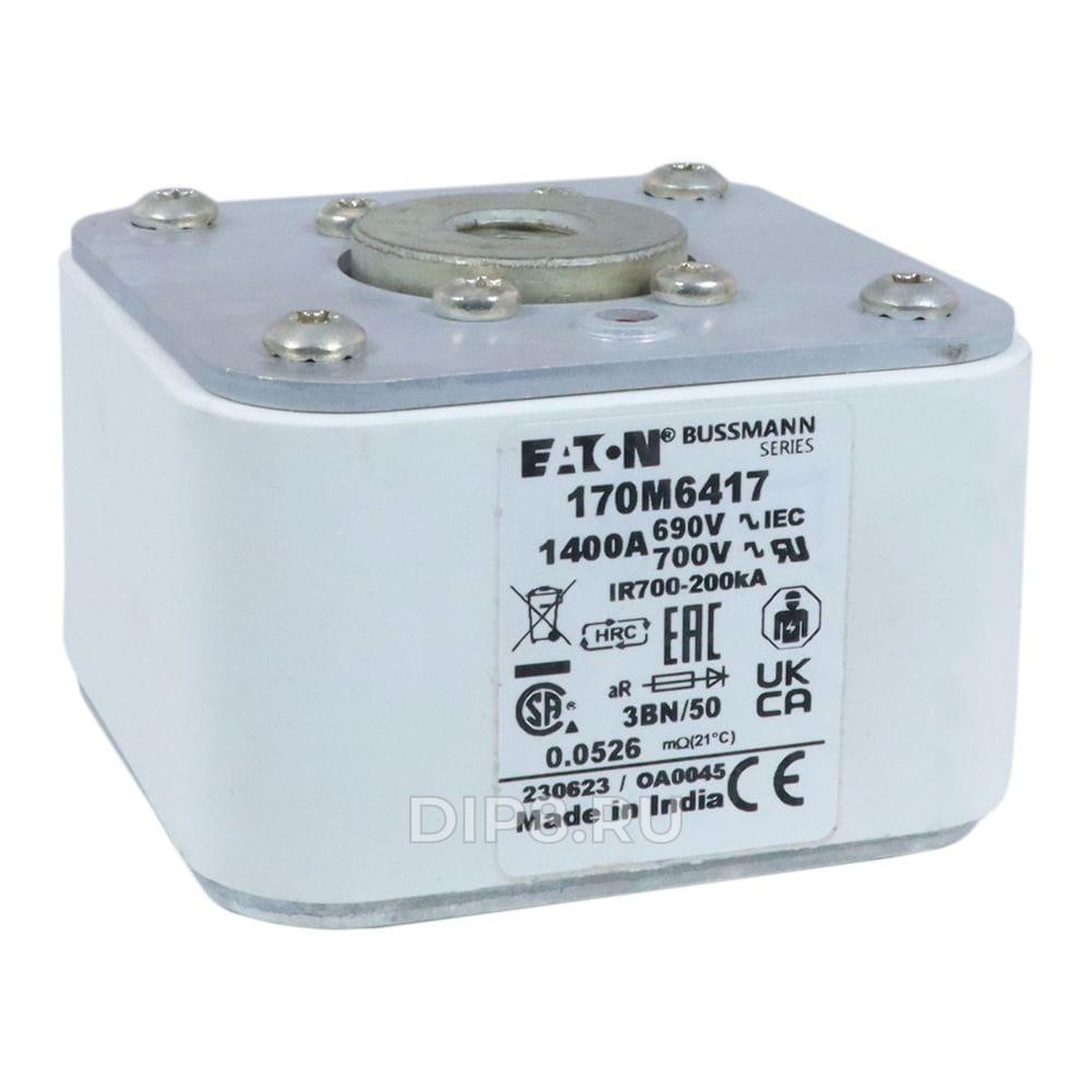 Предохранитель плавкая вставка 170M6417 от производителя BUSSMANN - это надежное решение для защиты промышленного оборудования. Исполнен из керамического материала, этот предохранитель обладает времятоковой характеристикой aR, что обеспечивает защиту при кратковременных перегрузках. Рассчитан на использование в цепях переменного тока (AC) с номинальным током в 1400 А и напряжением до 690 В. Типоразмер 3BN/50 и габариты 76x53 мм гарантируют легкую установку в стандартные предохранительные устройства. Модель 170M6417 станет надежным элементом в системе электробезопасности вашего оборудования. Код товара для повторного поиска: 170M6417.