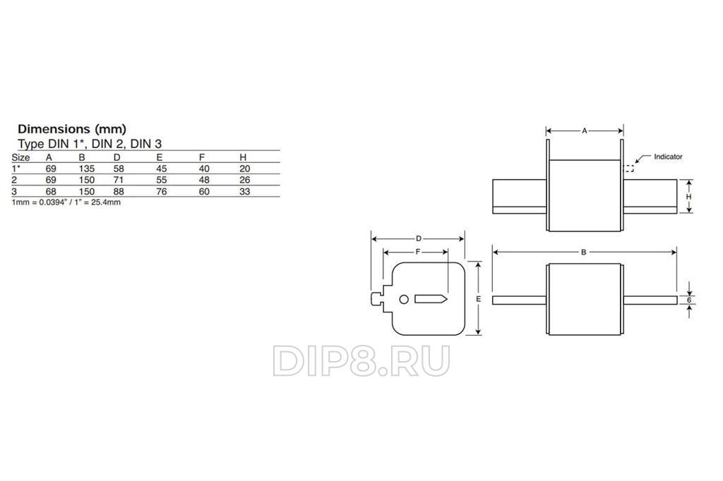 Предохранитель быстродействующий с характеристикой AR, 1000А, 690В AC, DIN3