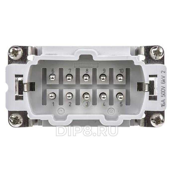 Разъем: HDC, "папа", HTS HE, PIN: 10, 10+PE, размер 4, 16А, 400В