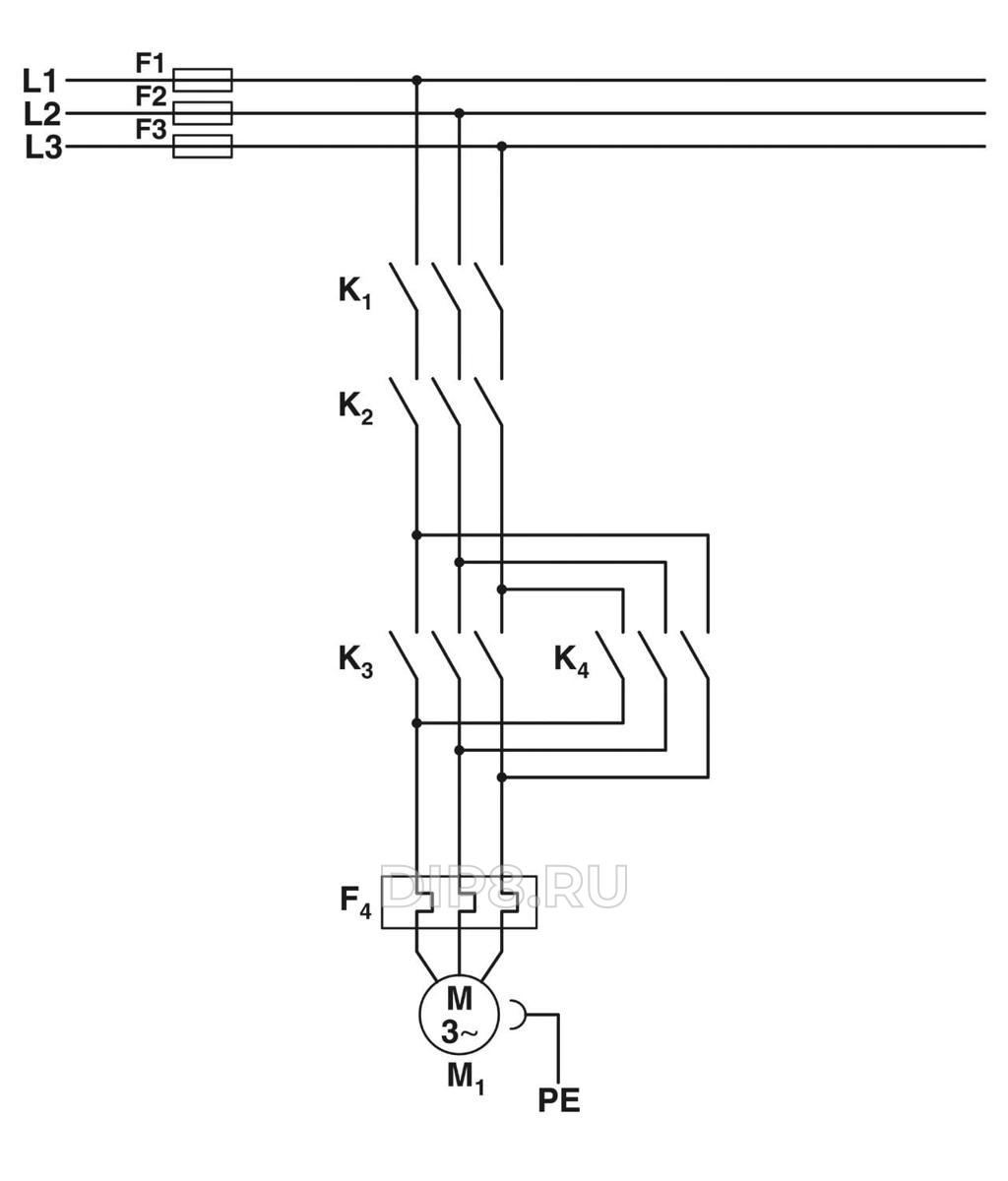 Трехфазный полупроводниковый реверсивный контактор "4 в 1", со входом 24 В DC, выходной ток 2 А, ава