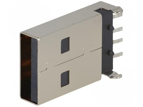 Вилка, USB A, на PCB, SMT, PIN: 4, горизонтальный, USB 2.0