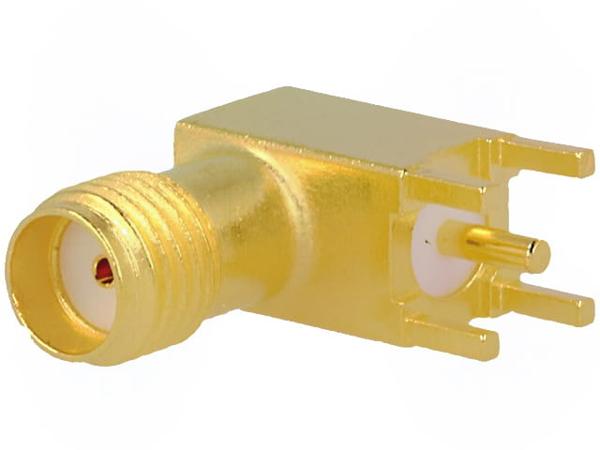 Гнездо, SMA, "мама", угловые 90°, 50Ом, THT, на плату, делрин (РОМ)
