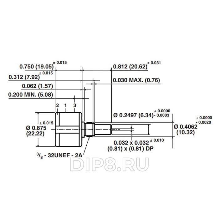 Потенциометр осевой, многооборотный, 1кОм, 2Вт, ±5%, 6,35мм
