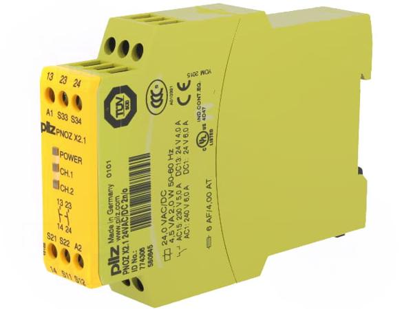 Модуль: реле безопасности, PNOZ X2.1, 24ВAC, Uпит: 24ВDC, IN: 2