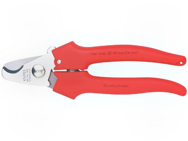 диапазон резки кабель медный/алюминиевый диам.9мм макс. (сечение 10мм<sup>2</sup> макс.), блокировка раскрытия, возвратная пружина, закаленное лезвие, зубчатые лезвия, на ручках - эргономичные пластиковые накладки, регулируемый поворотный соединитель |