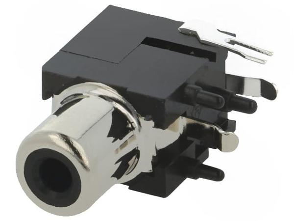 Гнездо, RCA, "мама", угловой 90°, THT, латунь, никелированные