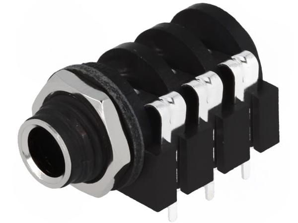 Гнездо, Jack 6,35мм, "мама", stereo, с двойным выключателем, THT