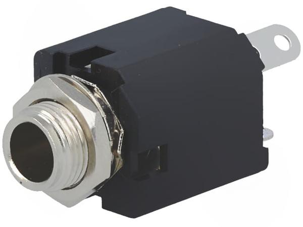 Гнездо, Jack 6,35мм, "мама", stereo, прямой, на панель, пайка