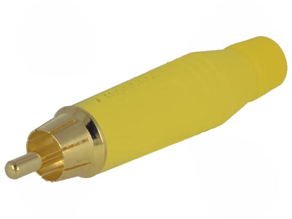 Вилка, RCA, "папа", прямой, пайка, желтый, позолота, на провод