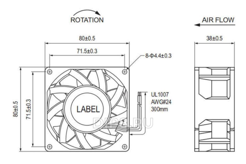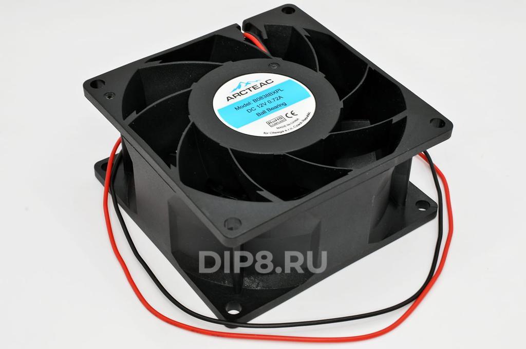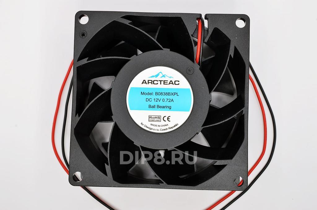 Вентилятор ARCTEAC B0838BXPL - осевой вентилятор с бесколлекторным DC мотором и двумя выходными проводами длиной 300 мм. Он имеет кубические размеры 80х80х38 мм и мощность 8,6 Вт. Вентил