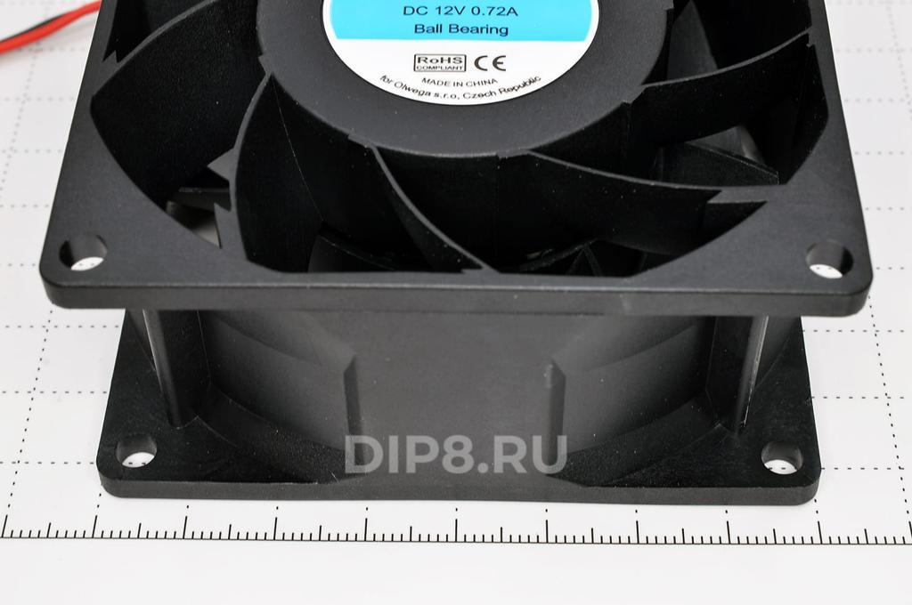 Вентилятор осевой, 80х80х38мм,12В, DC, 0.72А, 143куб.м/ч, подшипник качения, 5700об/мин, 2 провода