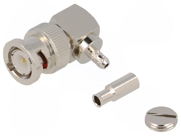 Вилка, BNC, "папа", угловой 90°, 50Ом, обжим, на провод, позолота