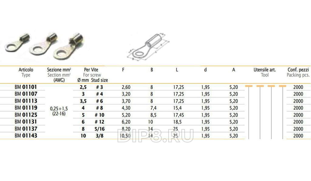 Наконечник: кольцевой, M6, 0,25-1,5мм2, обжим, на провод, луженые