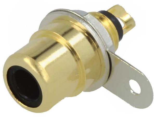Гнездо, RCA, "мама", прямой, пайка, позолота, Маркировка: черный