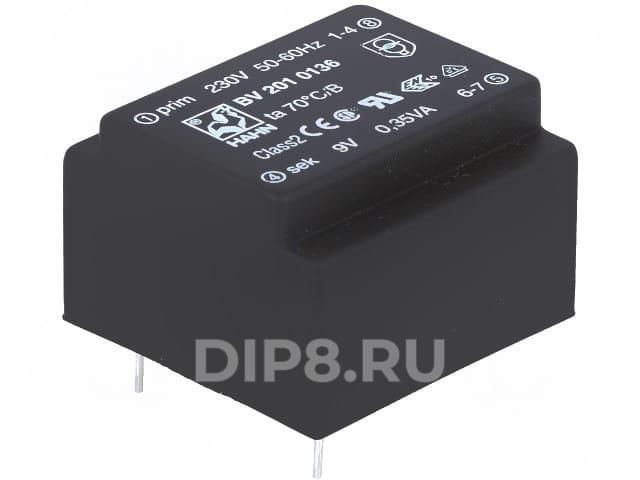 Трансформатор: залитый, 0,35ВА, 230ВAC, 9В, 39мА, Монтаж: PCB: 25г