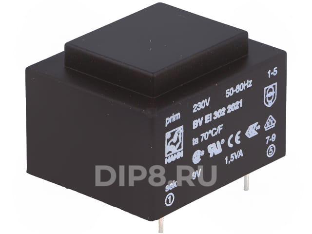 Трансформатор: залитый, 1,5ВА, 230ВAC, 9В, 166мА, PCB, 70г