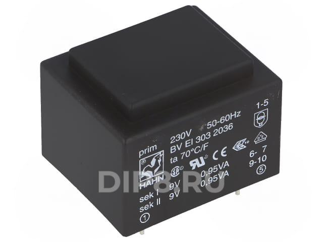 Трансформатор: залитый, 1,9ВА, 230ВAC, 9В, 9В, 105мА, 105мА