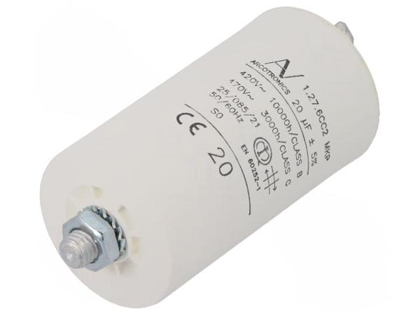 Конденсатор: для двигателей, фазосдвигающий, 20мкФ, 420ВAC, ±5%