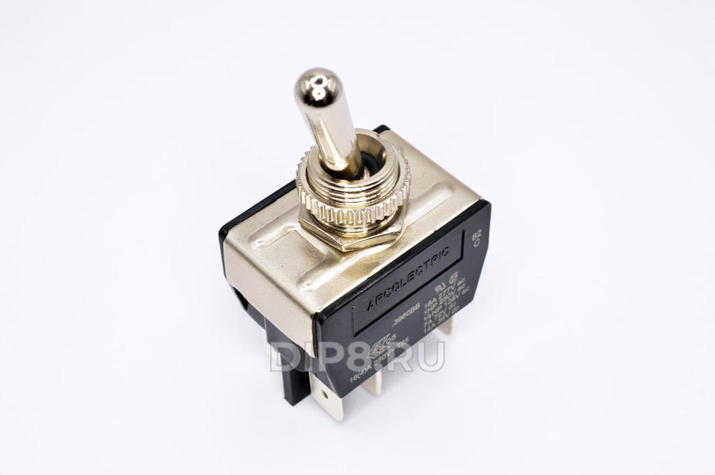 Переключатель тумблер, 2, DPDT, ON-ON, 10A/250ВAC, Отв 12,7мм