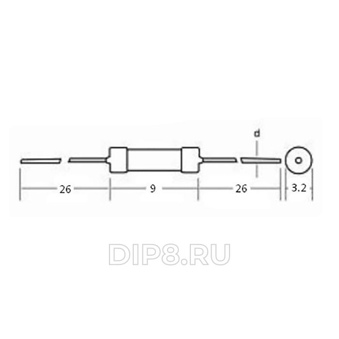 Размеры резистора составляют 3,2 мм в длину и 9 мм в ширину, что делает его компактным и удобным для установки.