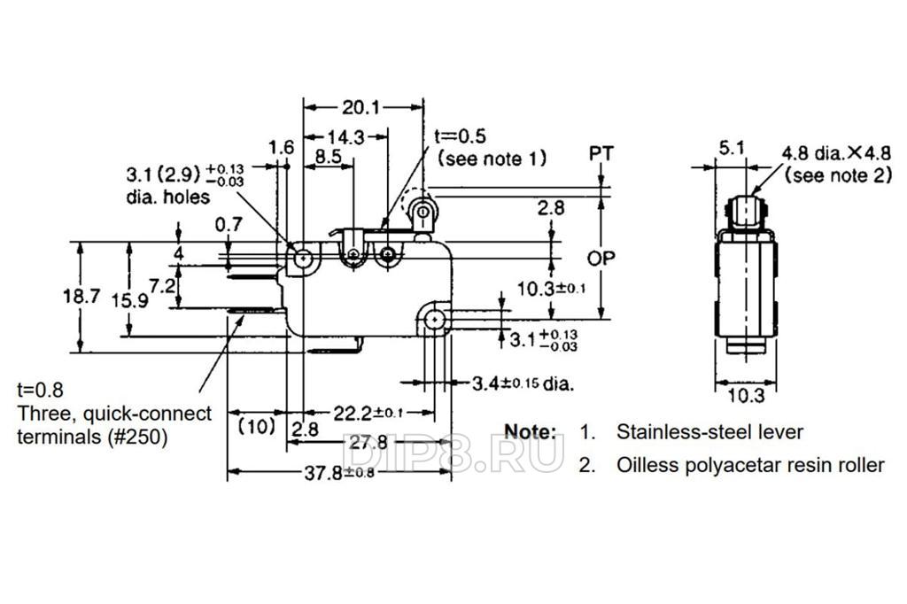 Микропереключатель SNAP ACTION; с рычагом (с роликом); SPDT