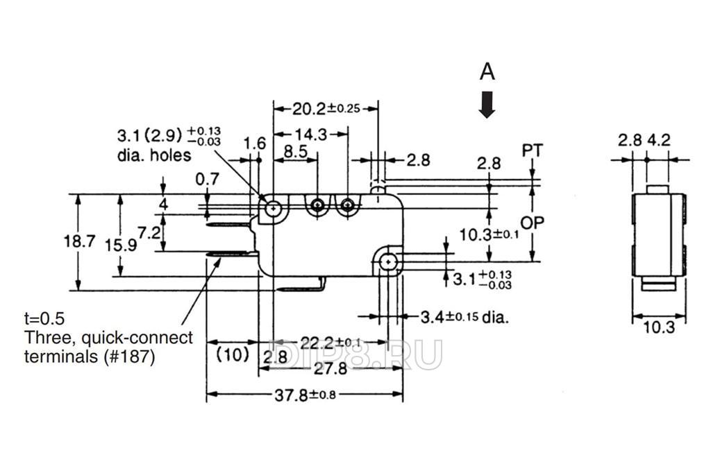 Микропереключатель SNAP ACTION; без рычага; SPDT; 16A/250ВAC