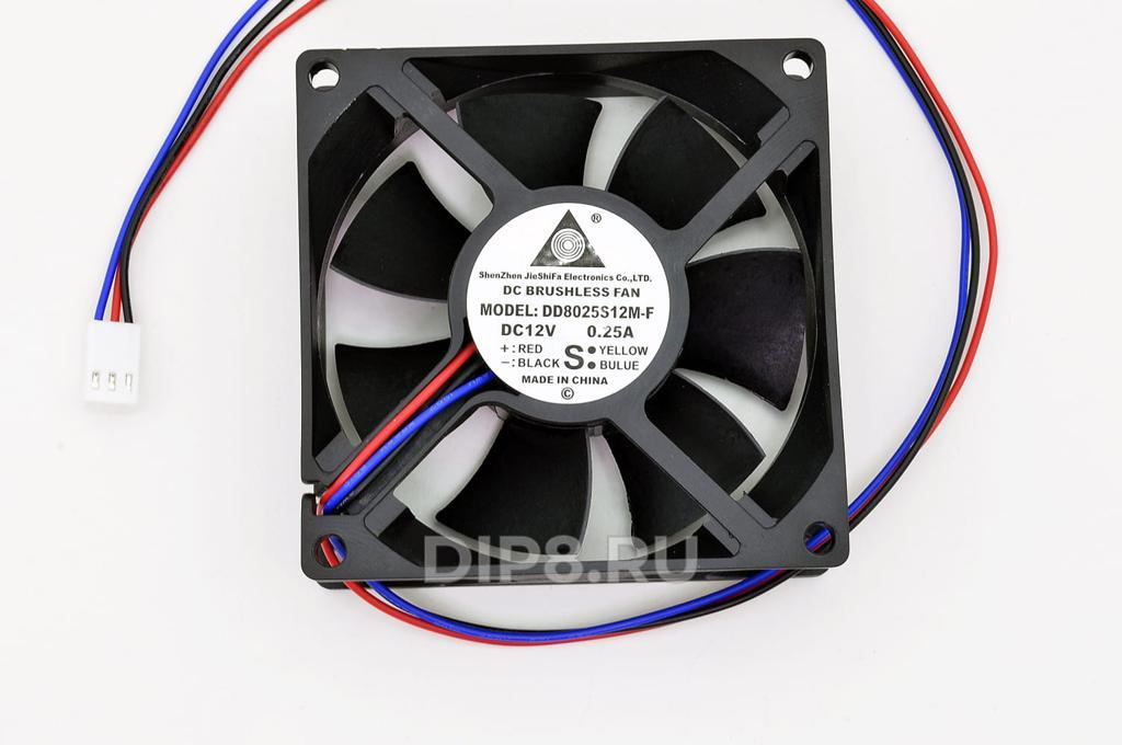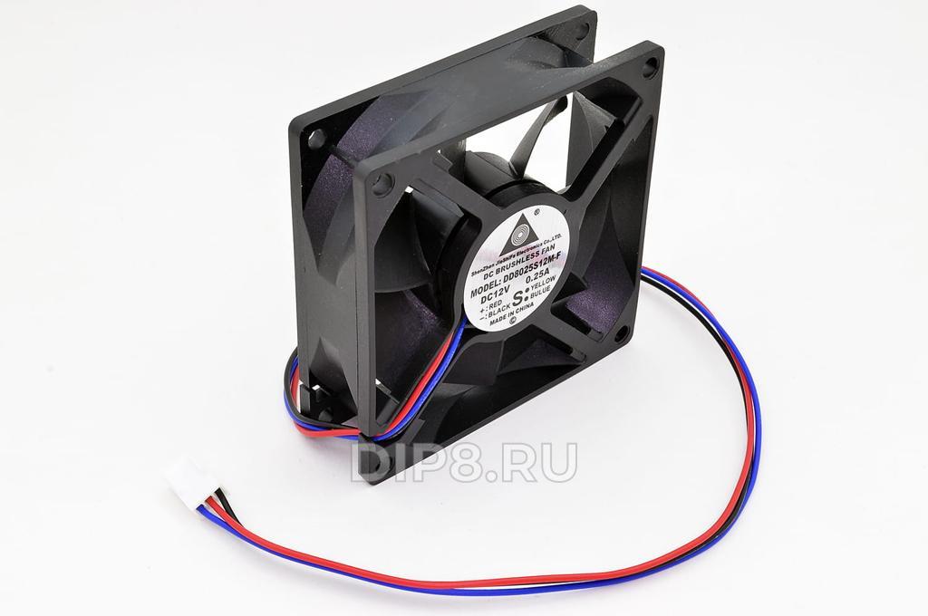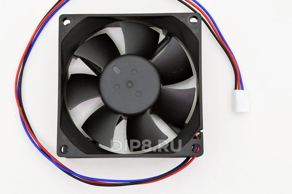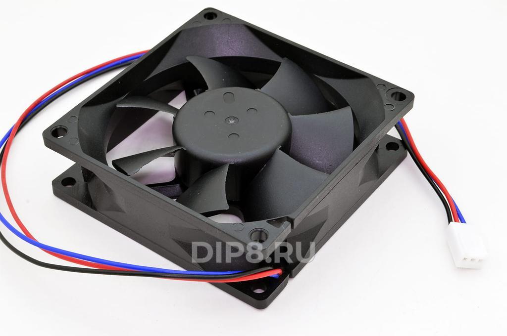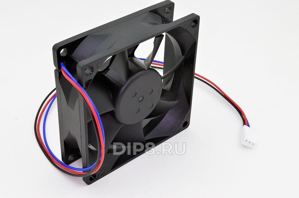 Вентилятор: осевой; 80х80х25 мм; 12 В DC; 0,18 А; подшипник скольжения; 2000 об/мин; 66 м3/ч; 30 dB; 3 pin; провод UL2468 24AWG 300 мм с разъёмом 2510