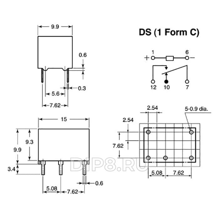 Реле: электромагнитное, SPDT, Uобмотки: 12ВDC, Iконтакт.макс: 2А