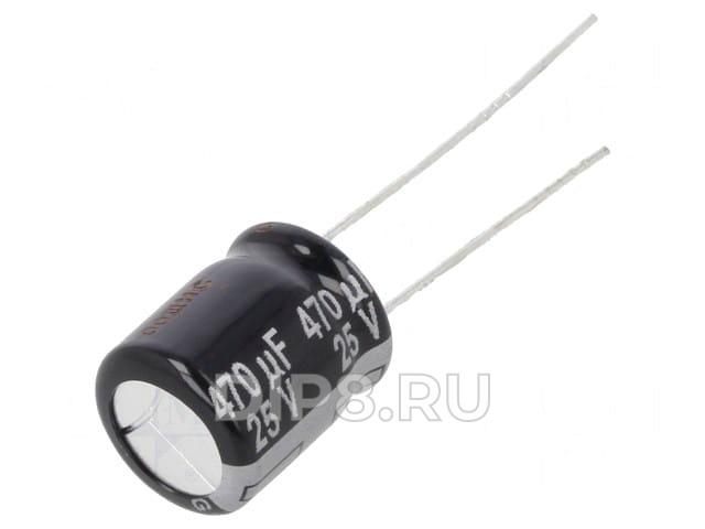 Конденсатор: электролитический, THT, 470мкФ, 25ВDC, d10x12,5мм