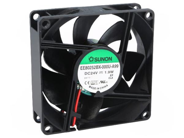 Вентилятор осевой, 24В DC, 80х80х25мм, 0.08А, 1.9Вт, качения, 3600об/мин, 2 провода