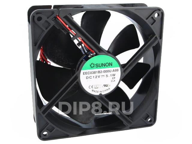 Вентилятор SUNON EEC0381B2-A99 – осевой вентилятор для охлаждения и обеспечения дополнительного воздушного потока. Он имеет воздушный поток 197,2 куб.м/ч и статическое давление 65 Па. Размеры вентилятора – 120 мм по диаметру и 38 мм по толщине. Уровень шума 44 дБА. Напряжение питания 12 В, минимальное пусковое напряжение 6 В, максимальное рабочее напряжение 13,8 В. Номинальный ток 0,421 А, потребляемая мощность 5,1 Вт. Тип мотора – бесколлекторный, скорость вращения – 2 600 об/мин. Длина провода 300 мм, диаметр провода 24AWG. Материал корпуса – термопласт, материал крыльчатки – термопласт. Класс изоляции A, сопротивление изоляции мин. 10 Мом. Минимальная рабочая температура -10 °C, максимальная рабочая температура 70 °C. Тип подшипника – качения. Выводы – 2 провода.