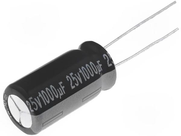 Конденсатор электролитический, THT, 1000мкФ, 25В, 10x25мм, ±20%