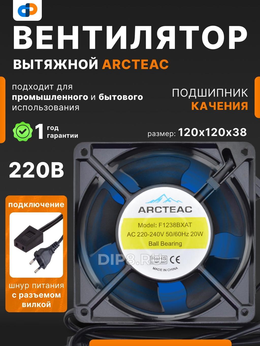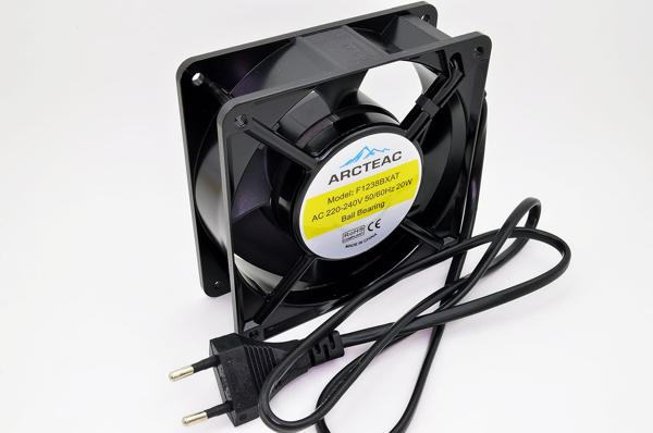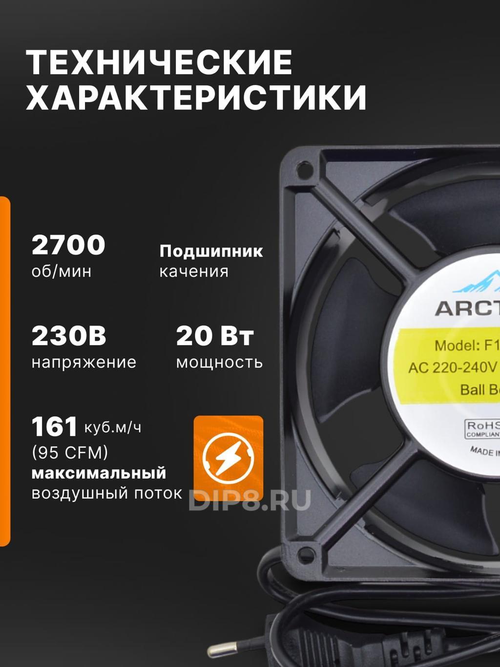 Вентилятор: осевой; 120х120х38 мм; 230 В AC; 0,14 А; 161 куб.м/ч; 20 Вт; подшипник качения, 2700 об/мин, кабель с вилкой длиной 1 м