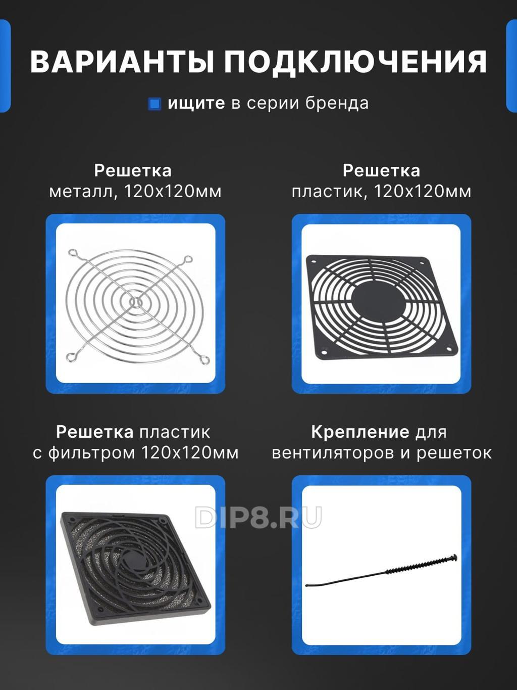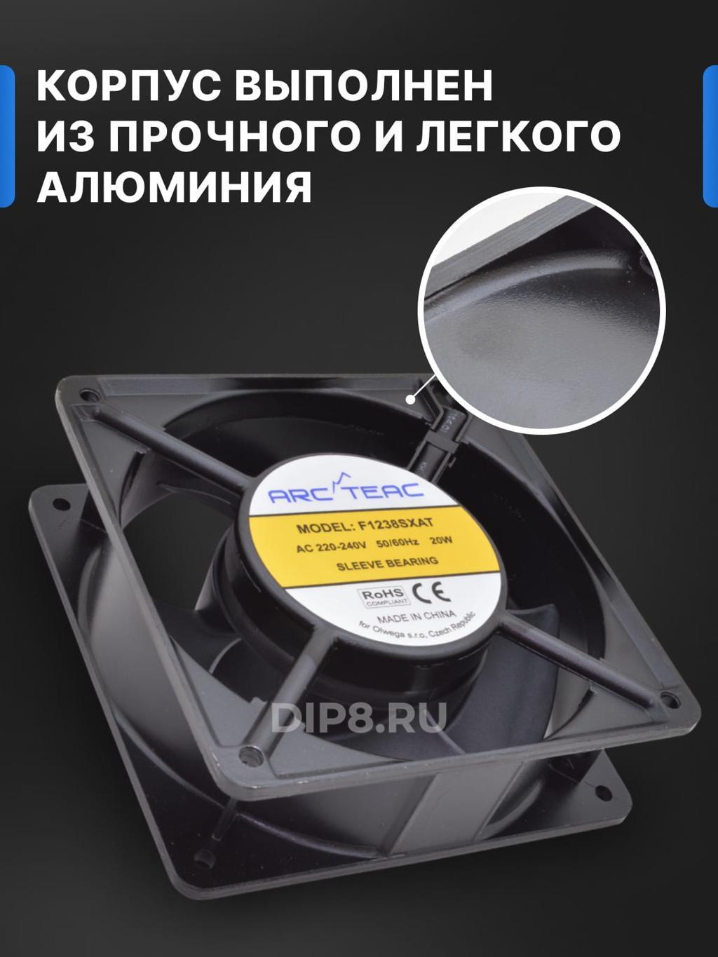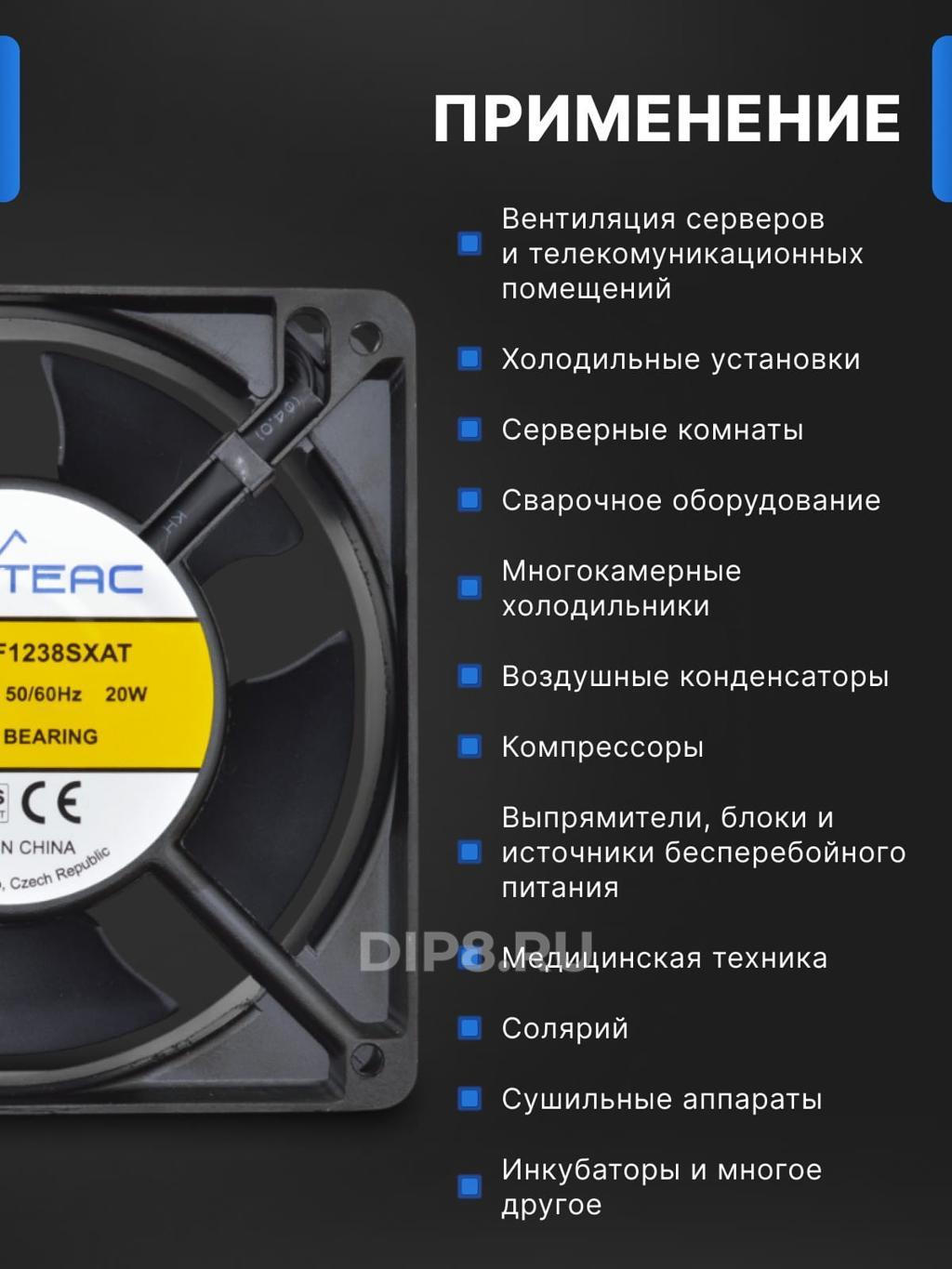 Вентилятор: осевой; 120х120х38 мм; 230 В AC; 0,14 А; 161 куб.м/ч; 20 Вт; подшипник скольжения; 2700 об/мин; клеммная колодка