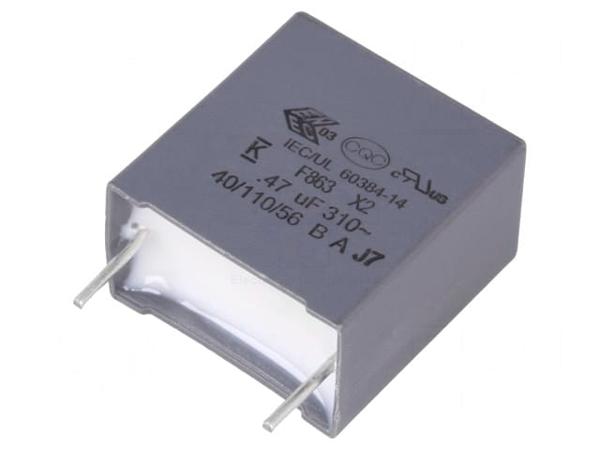 Конденсатор: полипропиленовый, Х2, 0,47мкФ, 15мм, ±10%, 18x19x11мм
