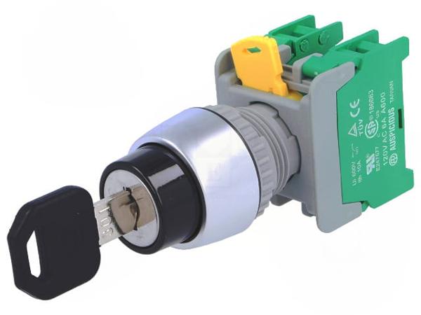 Переключатель: поворотный с ключом, Фикс.пол: 3, NO x2, 3A/230ВAC