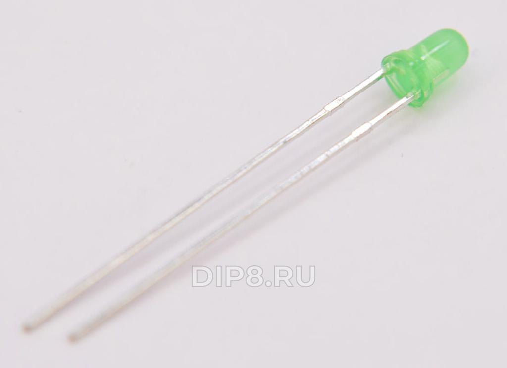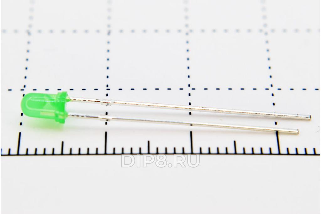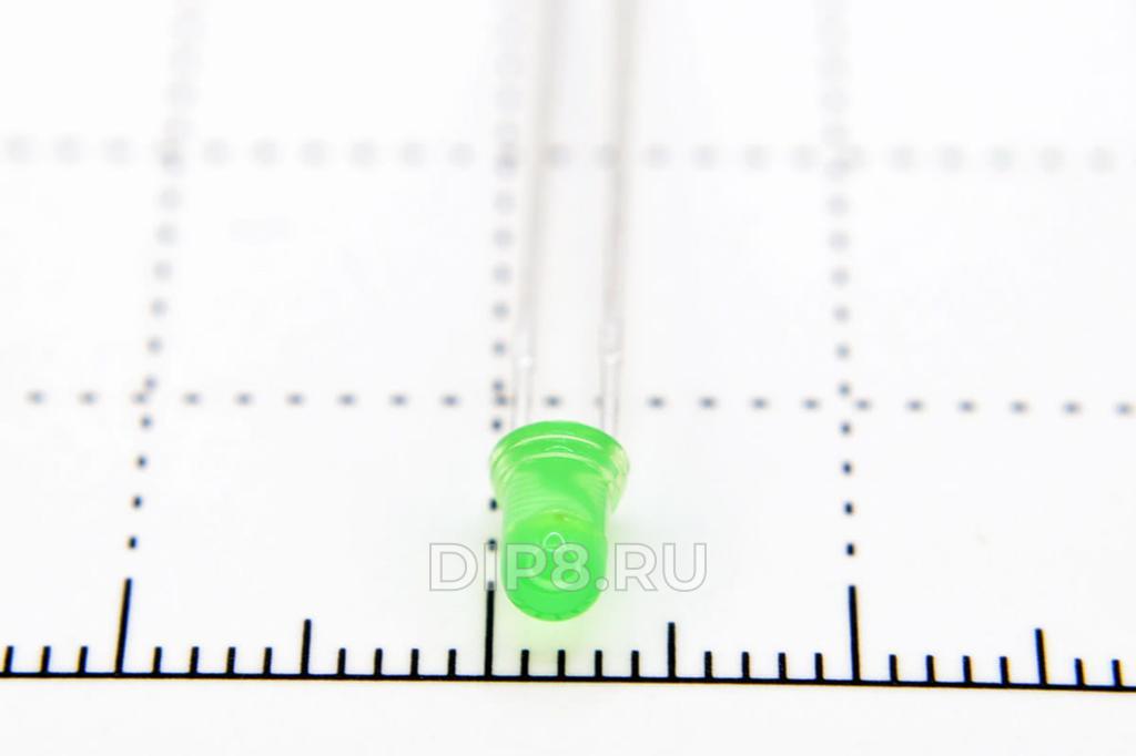 Светодиод зеленый 60° d=3мм 15мКд 568нМ