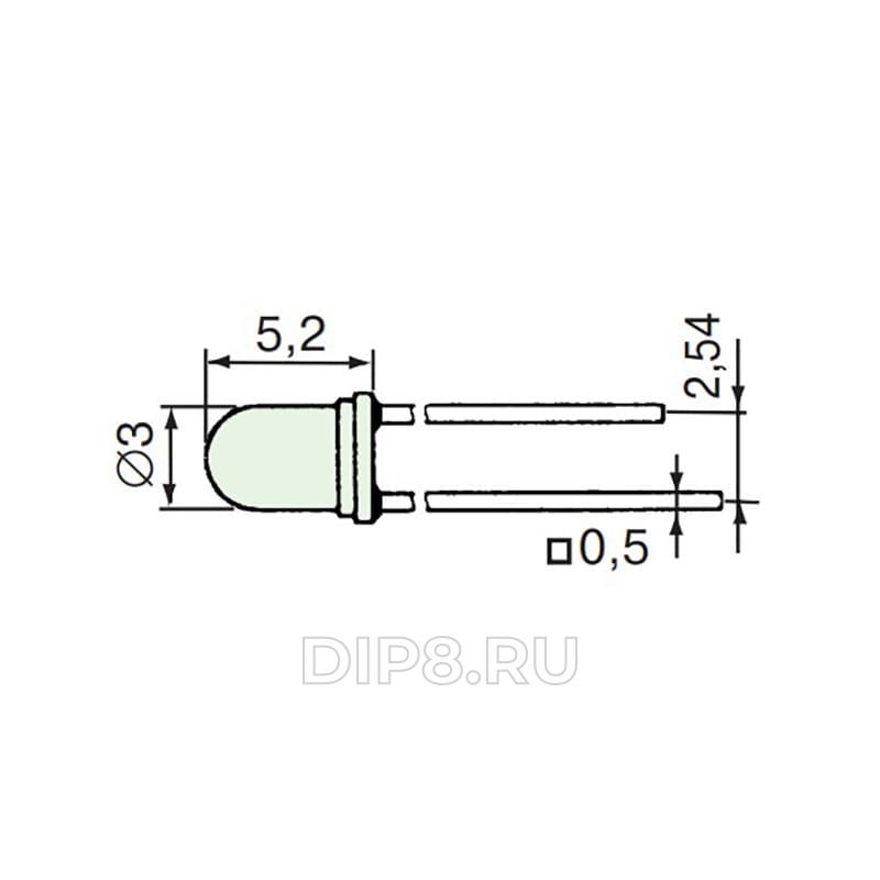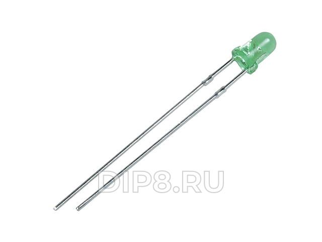 LED; 3мм; зеленый; 20-40мкд; 50°; Поверхность: выпуклая; 2-2,4В
