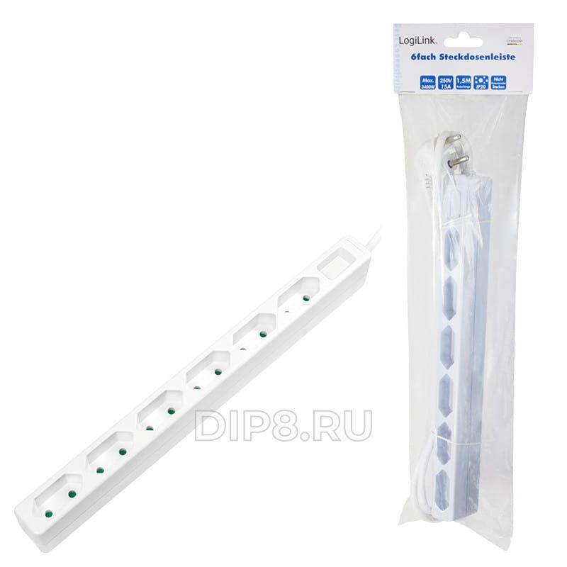 Сетевой фильтр защитный, Гнезда 6, 250ВAC, 15А, Цвет белый, 1,5м