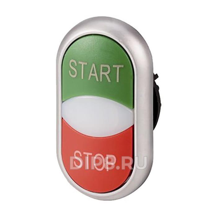 Двойная кнопка с сигнальной лампой с обозначением "start", "stop", цвет зеленый/красный