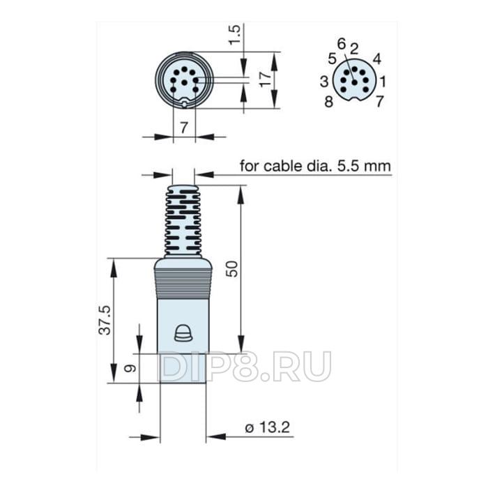 Вилка, DIN, "папа", PIN 8, конфигурация выводов 262°, прямой