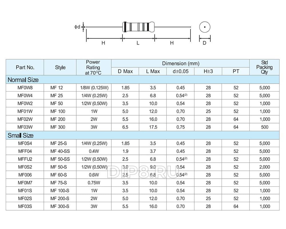 Резистор ROYAL OHM M0.4W-470K является металлопленочным резистором с сопротивлением 470 кОм, погрешностью ±1%, рабочим напряжением до 200 В и мощностью 0,4 Вт. Резистор имеет температурный коэффициент 50 ppm/°C и размер 1,9x3,7 мм. Монтаж резистора производится методом THT.