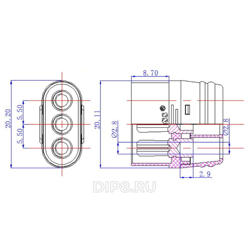 Вилка, питания DC, MR60, "папа", PIN: 3, на провод, под пайку