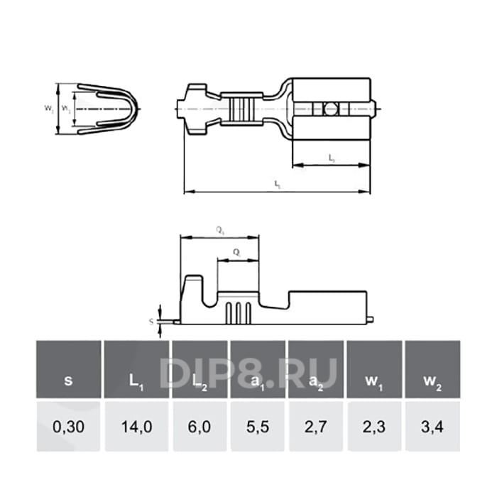 Наконечник: плоский; 2,8мм; 0,5мм; 0,2-0,5мм2; "мама"; обжим