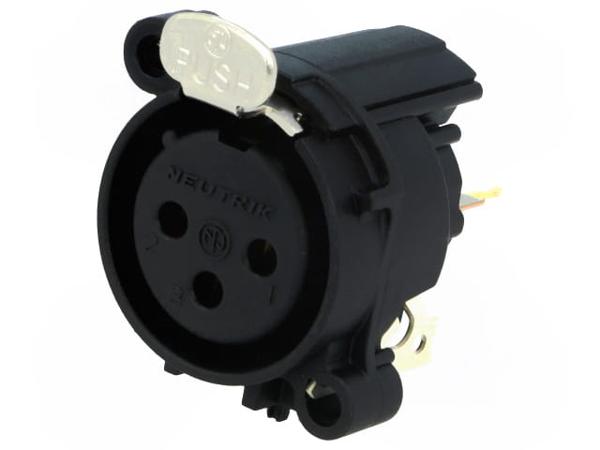 Гнездо, XLR, "мама", PIN: 3, прямой, с кнопкой, THT, черный, 6А