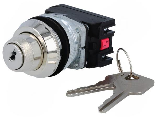 Переключатель: поворотный с ключом, Фикс.пол: 2, NC + NO, 30мм