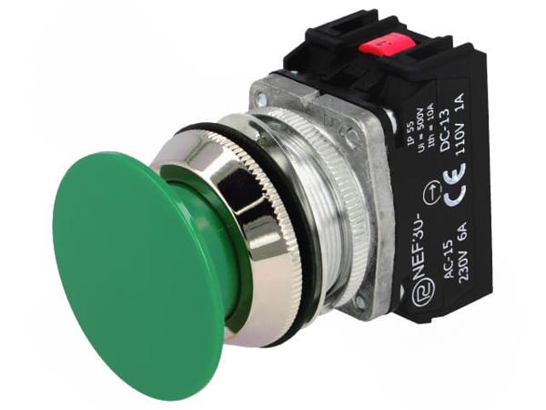 Переключатель: кнопочный, Фикс.пол: 1, NC + NO, 30мм, зеленый, IP56